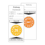 Prüfplaketten weisen auf regelmäßig notwendige Wartungen und Funktionskontrollen hin und sind eine bewährte Kennzeichnung für Inspektionen durch Fachpersonal.