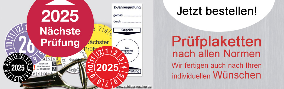 Sind die Prüfplaketten aus unserem Standardsortiment für Ihre Kennzeichnungszwecke nicht hinreichend, erstellen wir Ihnen gerne Ihre individuellen Prüfplaketten sowie Grundplaketten im Standardformat, als auch im Sonderformat.